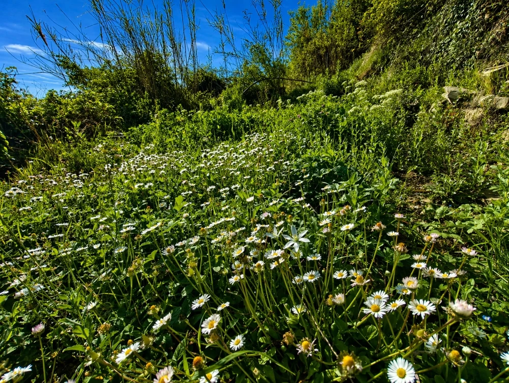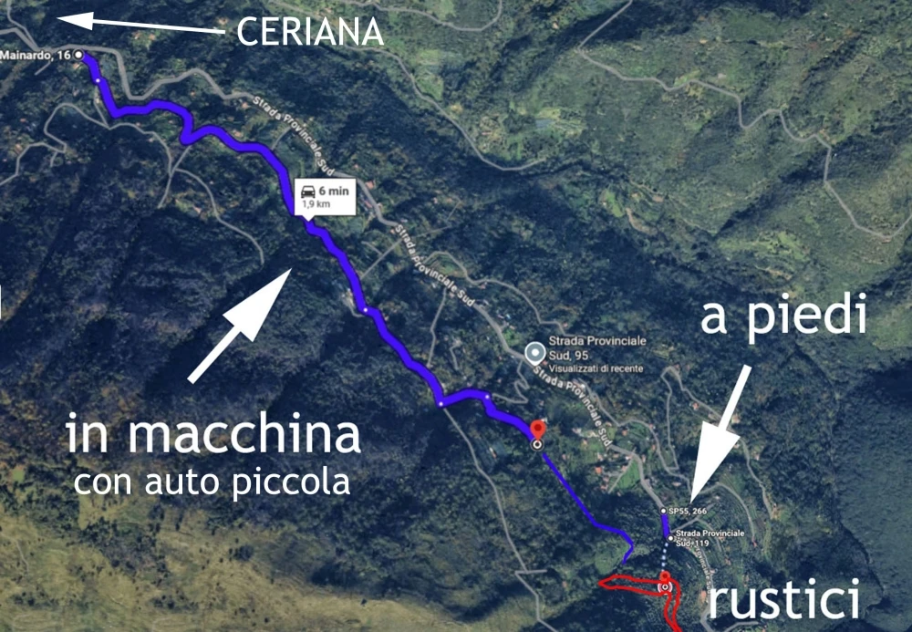 – Accesso pedonale al terreno tramite sentiero in salita (servitù di passaggio attiva su terreno di terzi);