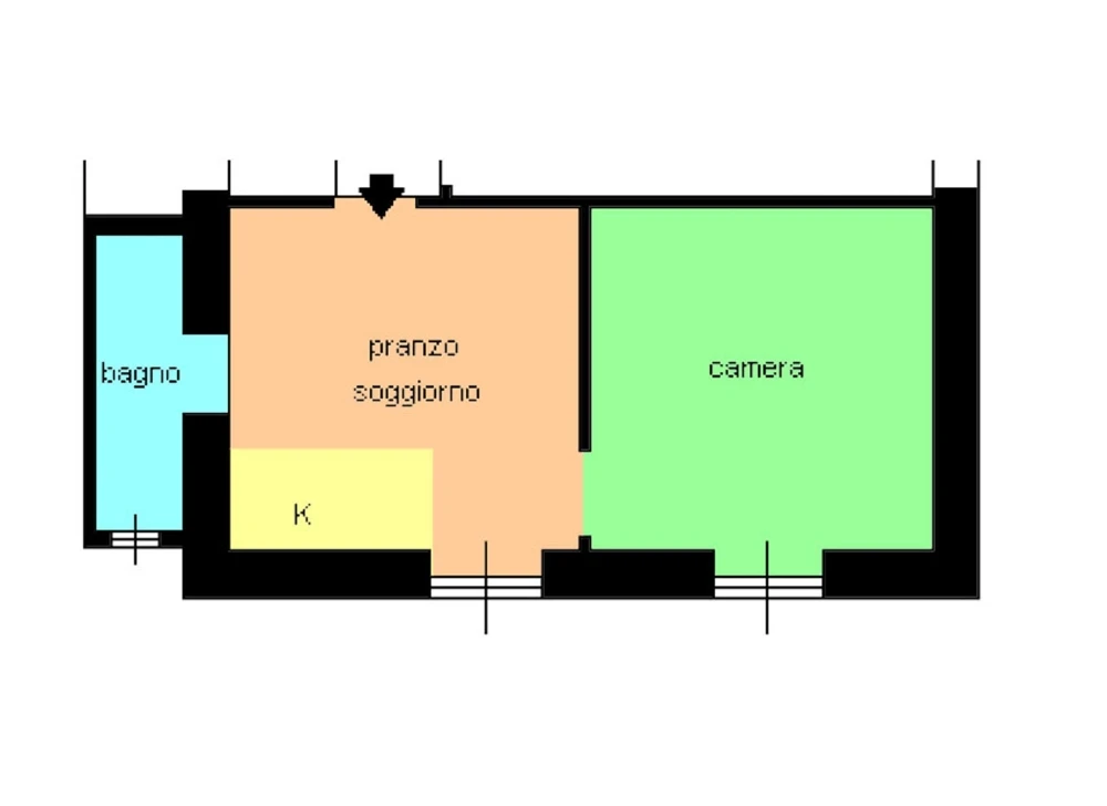 L’immobile è composto da ingresso su zona giorno con angolo cottura, bagno con vasca e finestra, camera. Non dispone di spazi esterni.