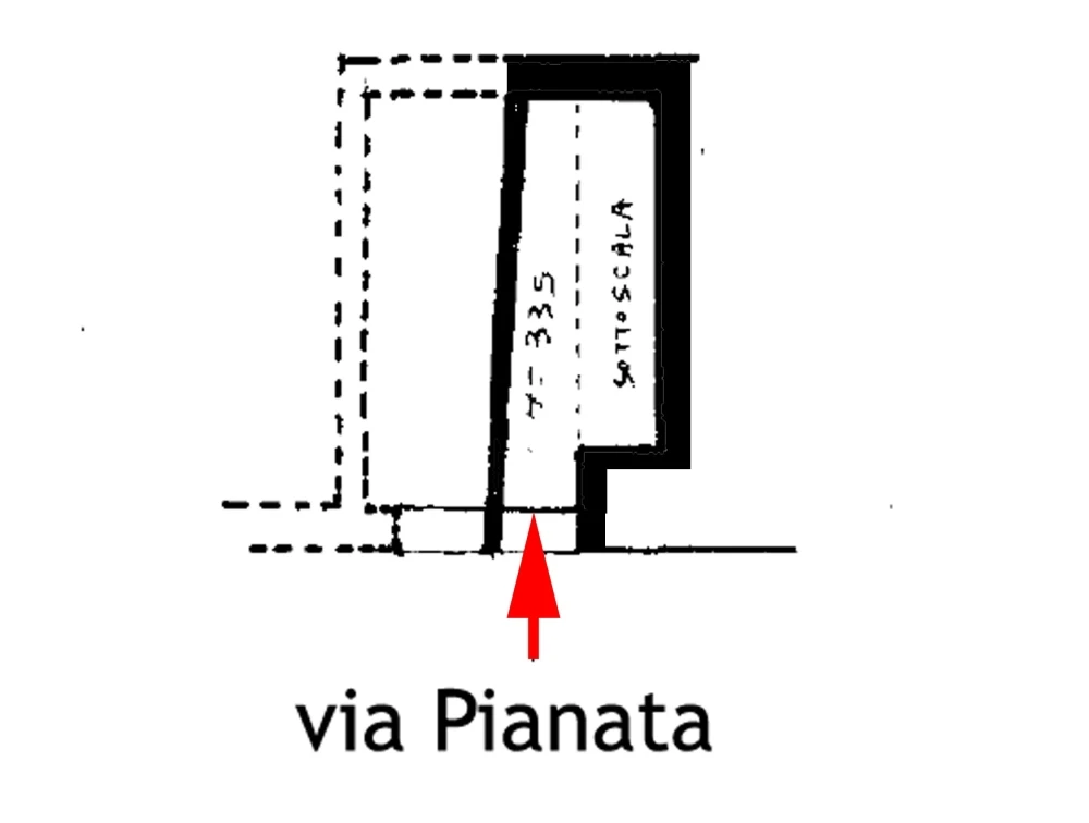 Per la maggior parte è alto 3,35 mentre nella parte di destra è un sottoscala con altezza variabile a partire da 20 cm fino a 3,35 m