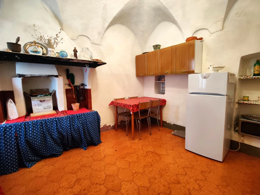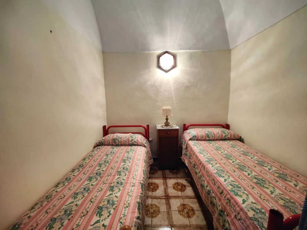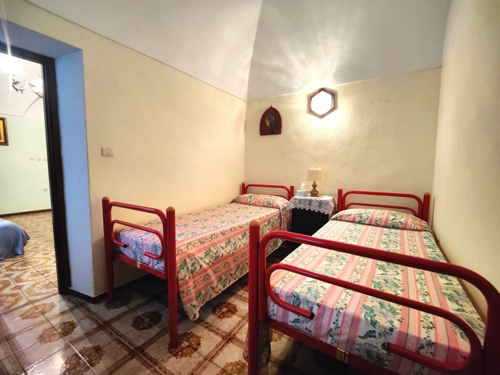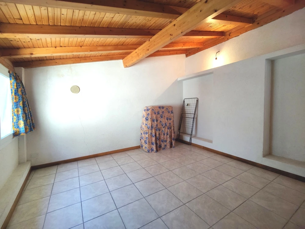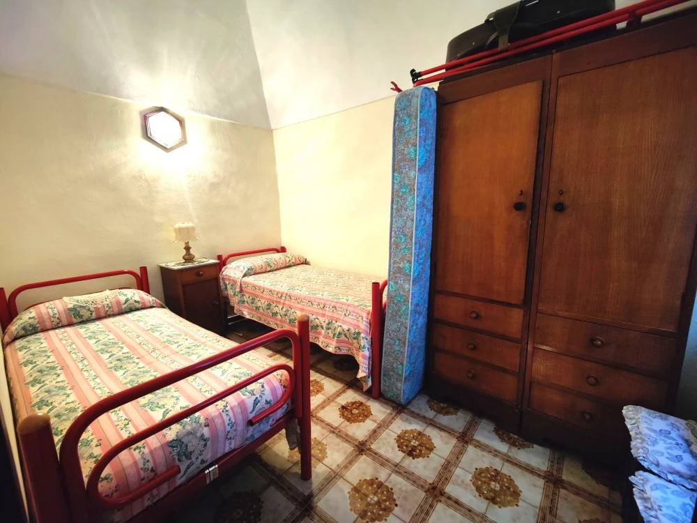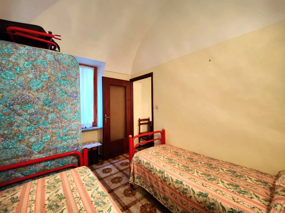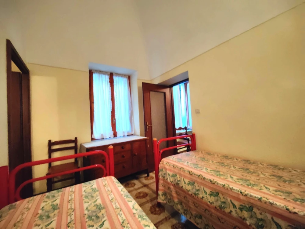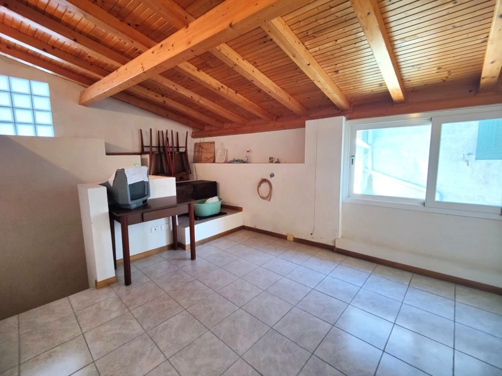 Dal fondo del corridoio una scala interna conduce a un piano intermedio dove è ubicata la cucina con camino; al piano superiore si trova un’ulteriore camera mansardata, con copertura rifatta nel 2008.