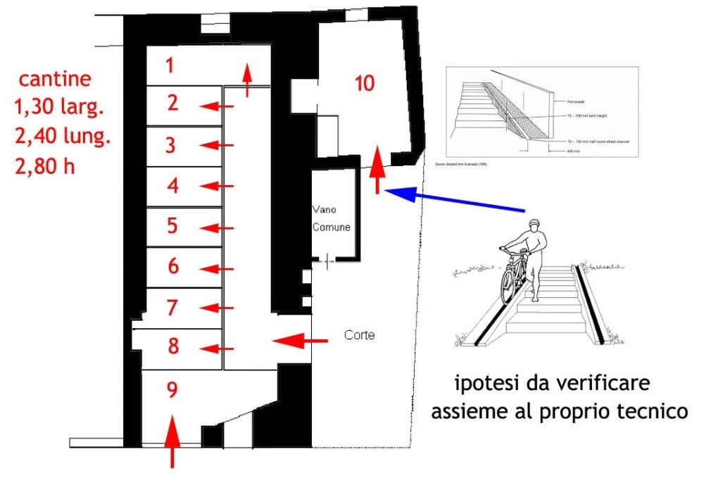 Ipotesi anche di trasformazione in 10 cantine per vendita o affitto da verificare con il proprio tecnico (vedi foto al fondo)